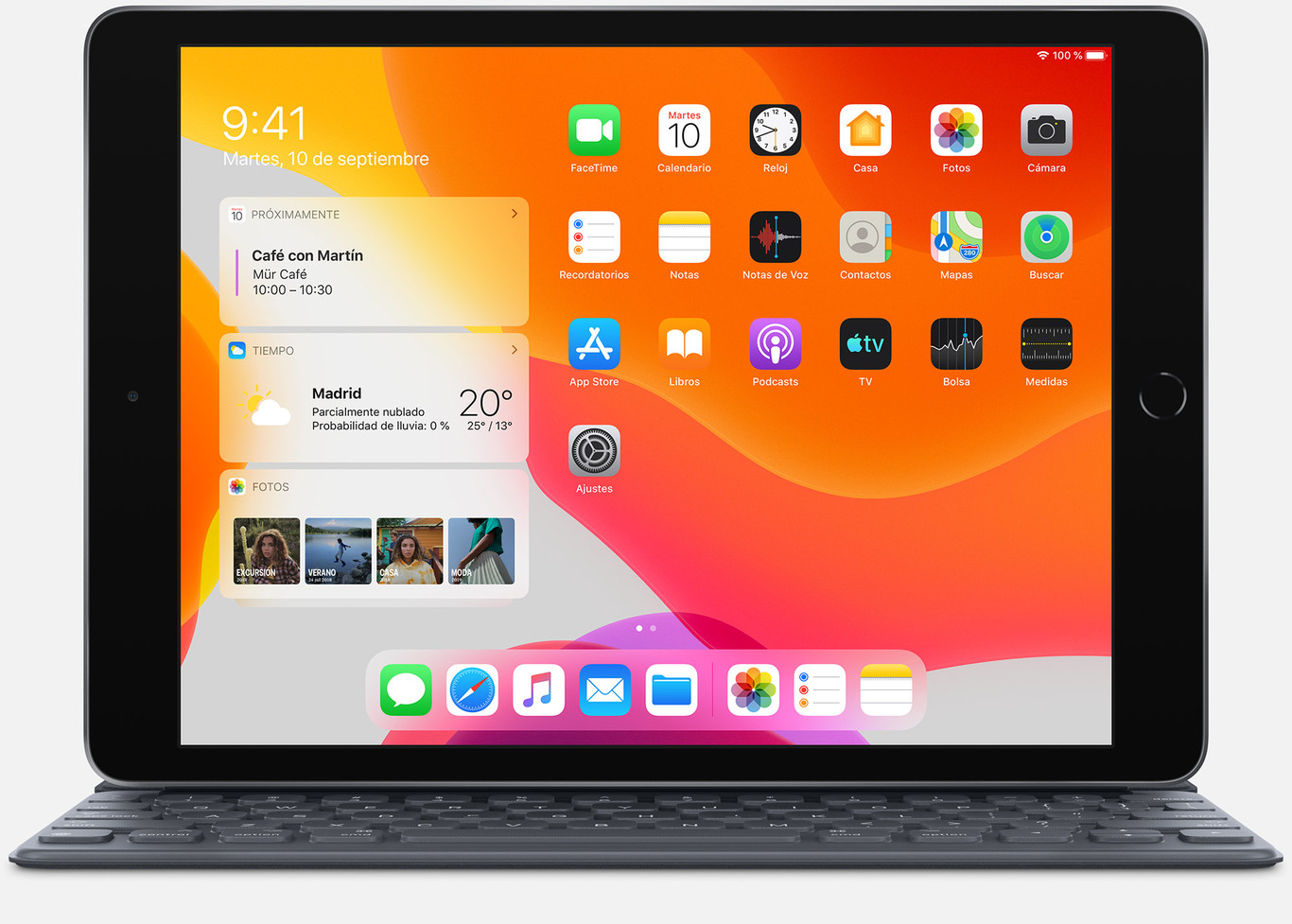 Súper liviano y portátil iPad con pantalla retina LED IPS de 10,2 pulgadas y cámara de 8 megapixels. Procesador Apple A10 Fusion con co-procesador M10.