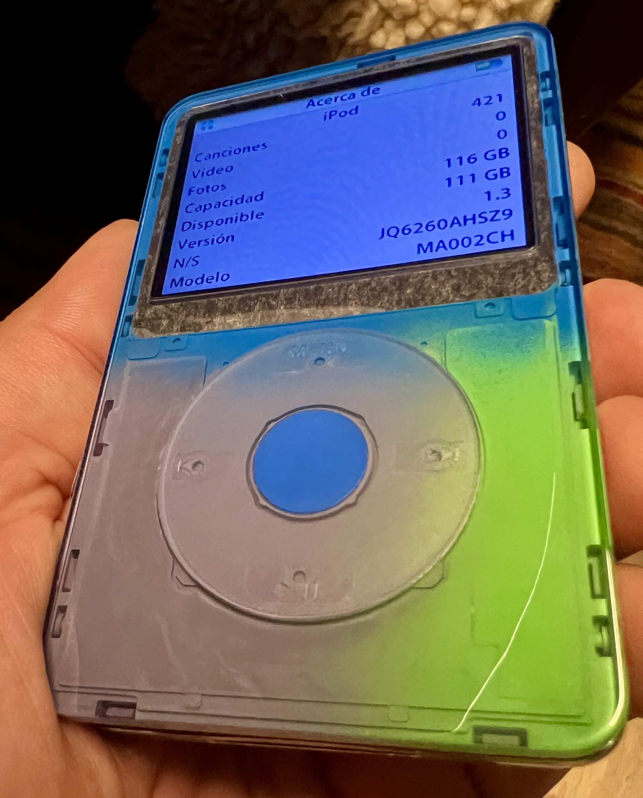 iPod Verde/Azul con 128GB de Almacenamiento y Batería de 2.000mAh.
