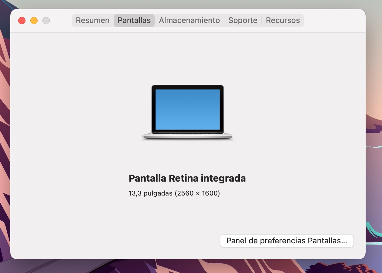 Pantalla de 13,3 pulgadas (diagonal) retroiluminada por LED con tecnología IPS; resolución nativa de 2560 x 1600 a 227 pixeles por pulgada compatible con millones de colores.